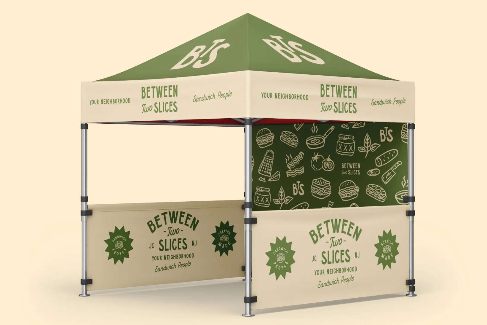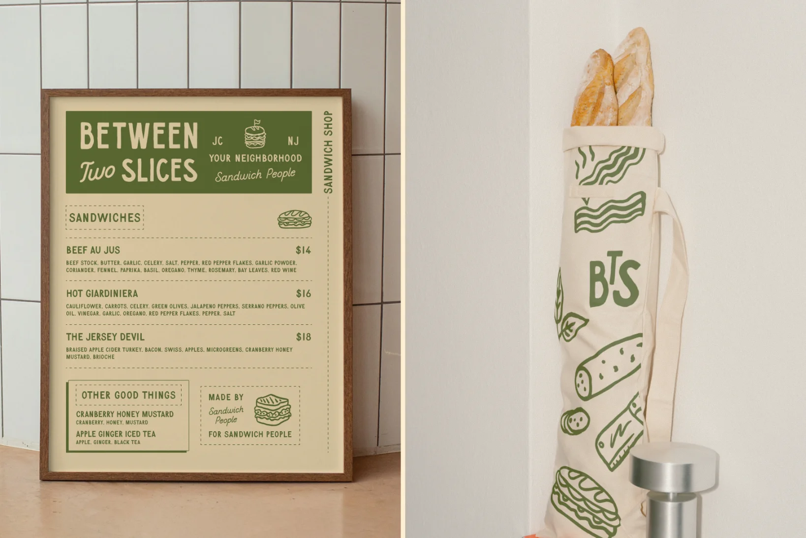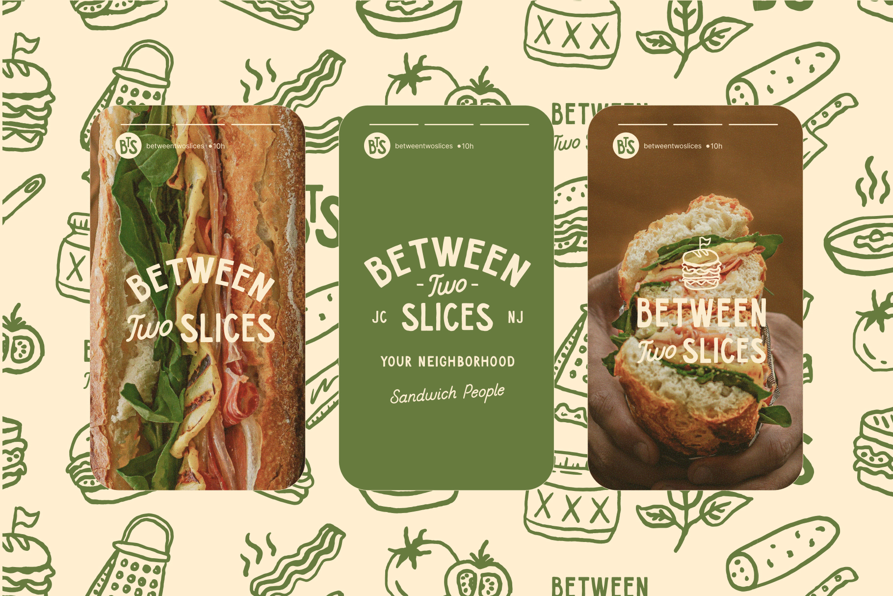 Say hello to Between Two Slices, a local New Jersey popup serving up a fresh take on the classic sandwich. Contemporary, nostalgic, and made for sandwich people (AKA all people) The goal? Build a brand that feels like your favorite neighborhood spot, warm, approachable, and full of personality. Something casual, but done with care.
