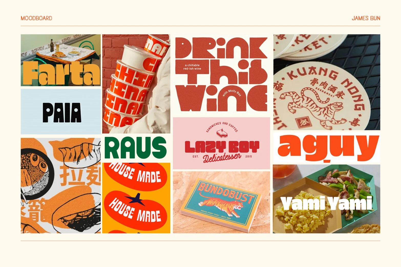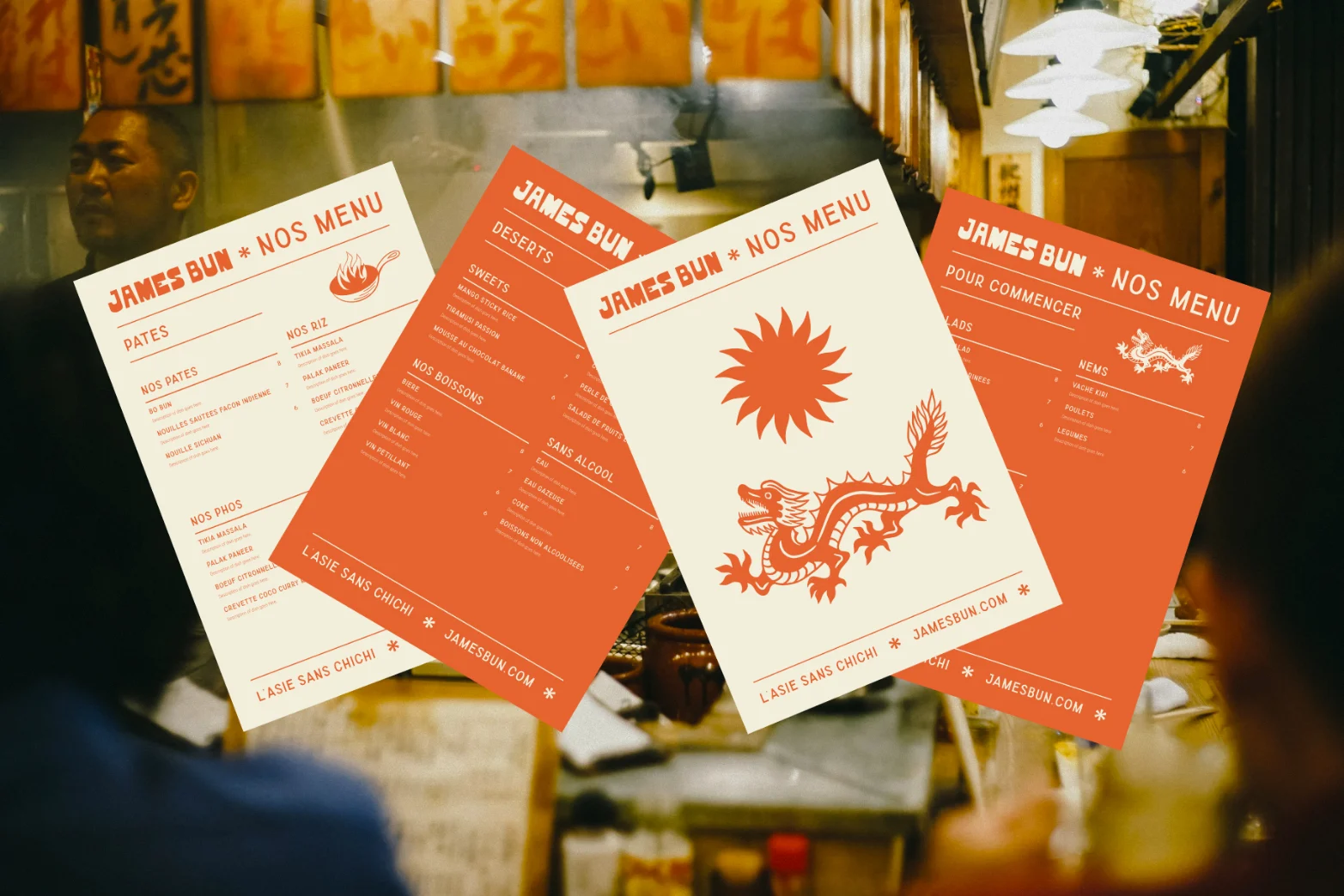 We set out to design a distinctive, eye capturing brand identity that would position James Bun as an affordable, generous, friendly restaurant. The identity needed to feel elevated without conveying pretentiousness. To achieve this, we created a playful brand identity that perfectly balanced sophistication with fun.